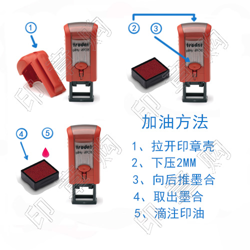 3. 内置印台——方便注油;可更换印台